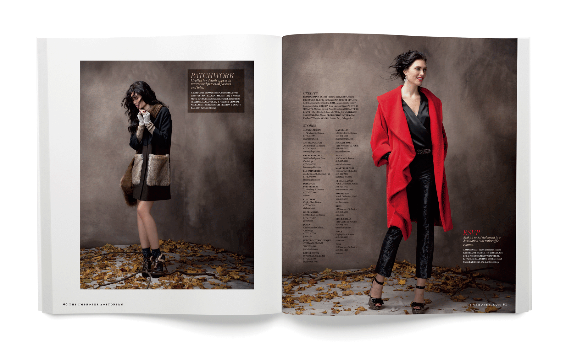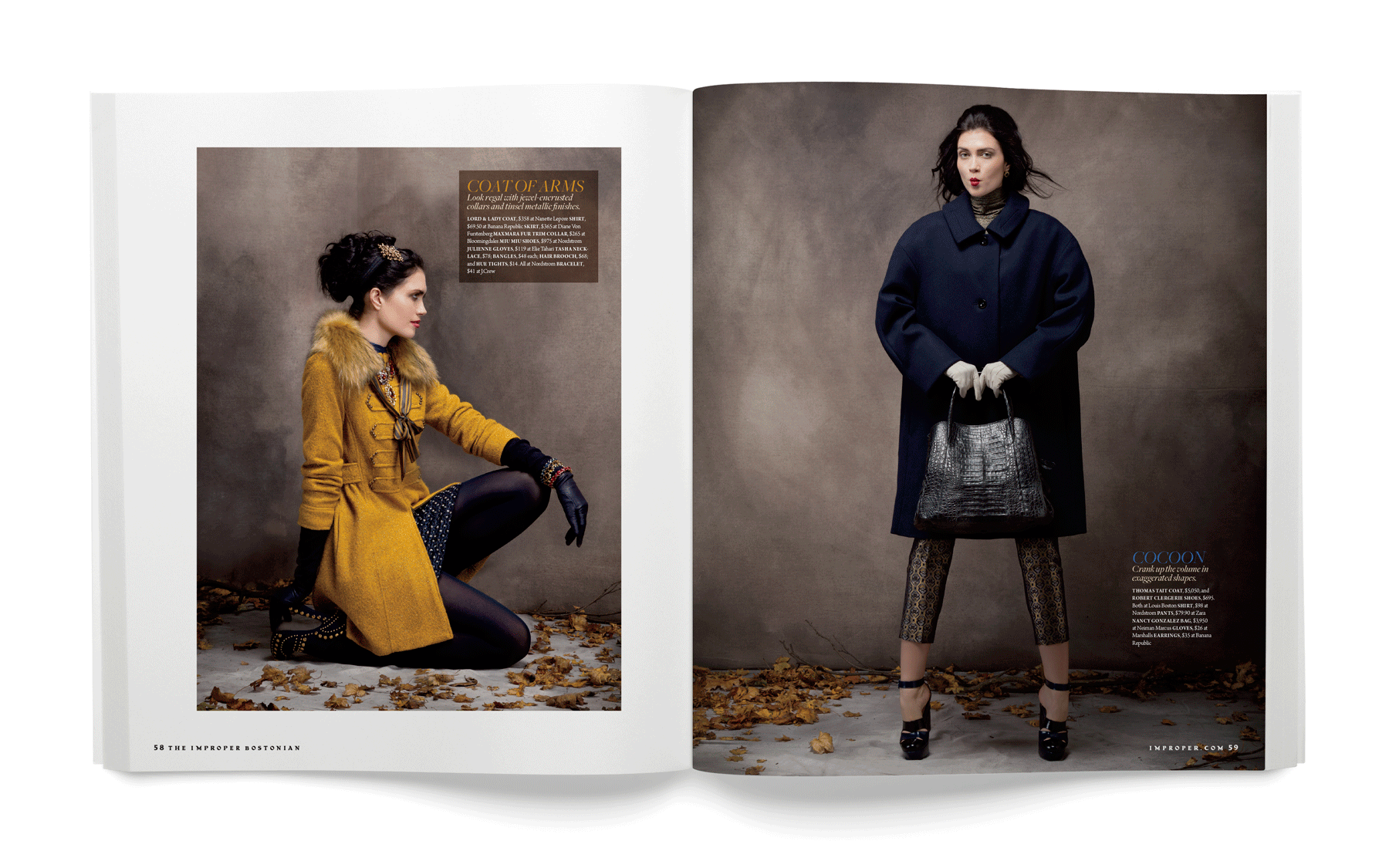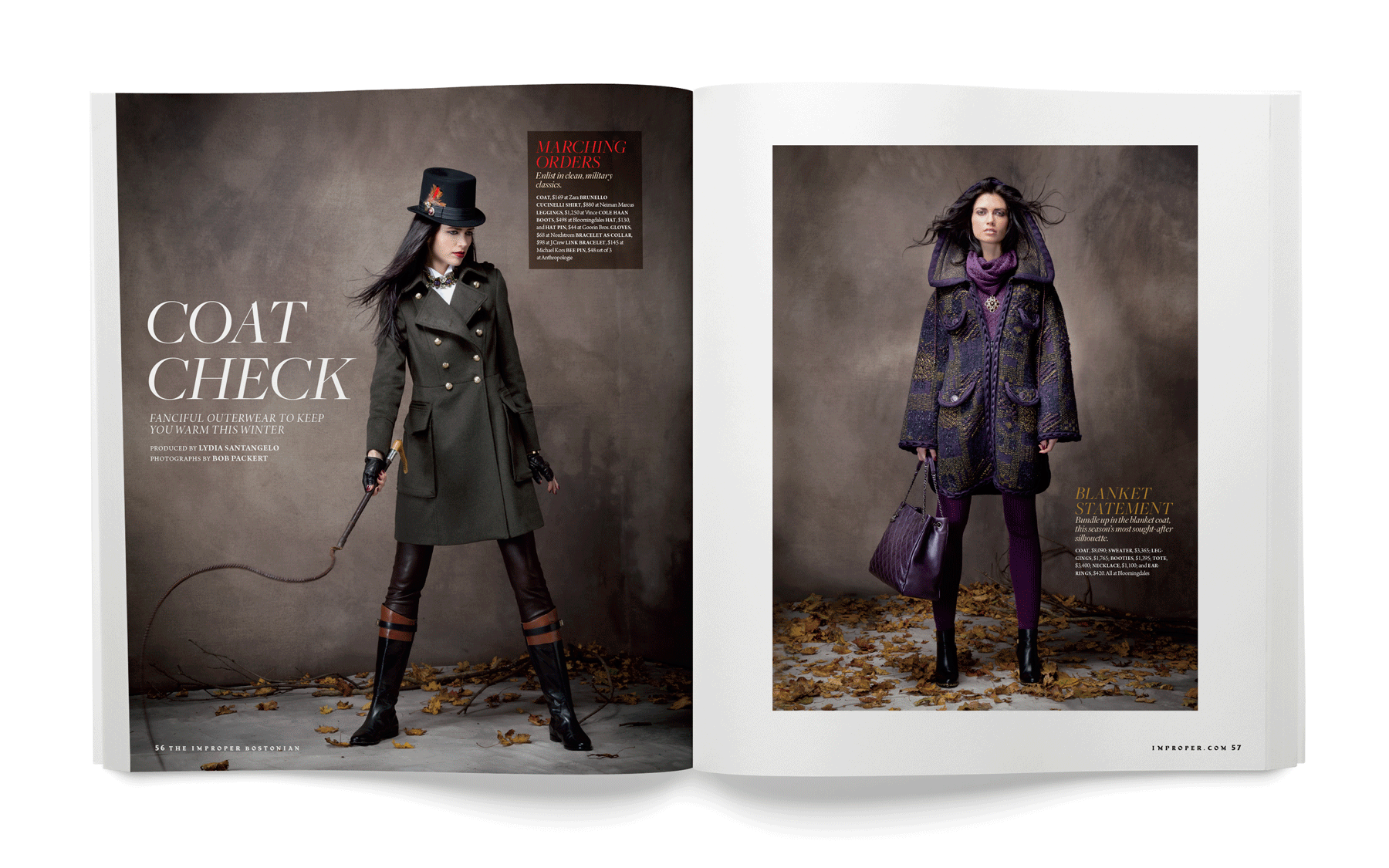 The Improper Bostonian, Coat CheckFashion editorial for The Improper Bostonian Magazine. Photography by Bob Packert, produced by Lydia Santangelo.